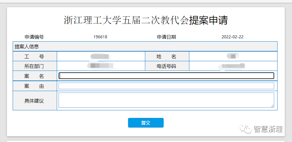 第二步,点击“提交提案-我要办理”,出现如图所示界面: