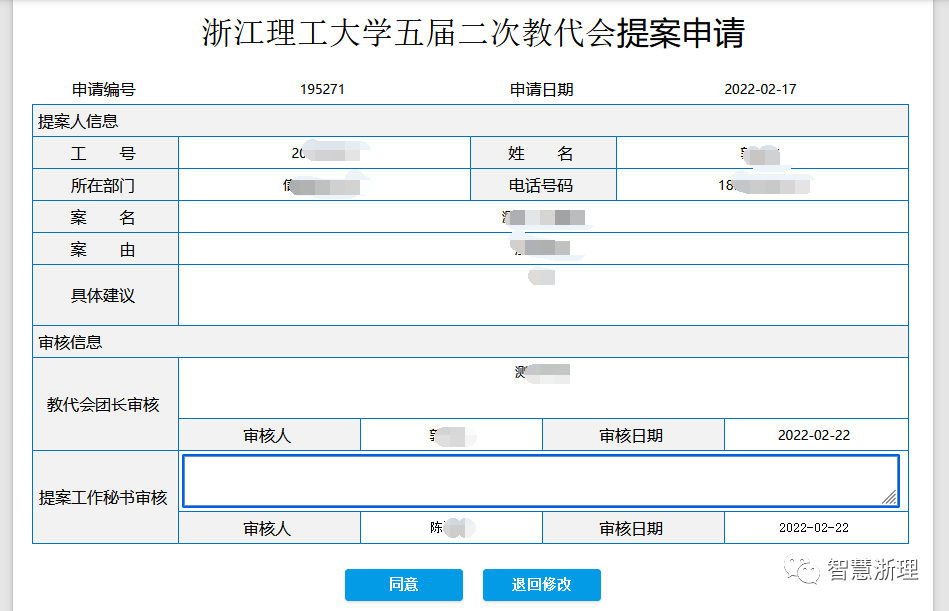 根据实际情况,给出审核意见,并点击“退回修改”或“同意”