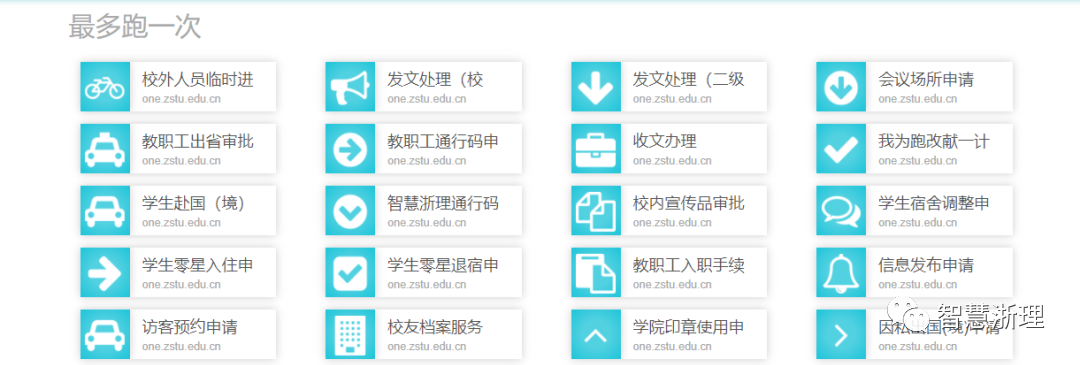 校内流程办理:学校网上办事大厅相关流程办理界面(有些流程只提供教职工可以申请),请根据需求选择。