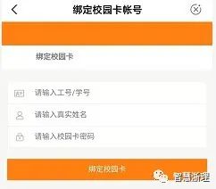 第五步:在界面中输入学(工)号、姓名、校园卡密码(默认密码为证件号码后六位,字母用数字“0”代替),点击“绑定校园卡”。注:校园卡和农行进行实名认证,请使用本人农行掌银APP绑定使用。