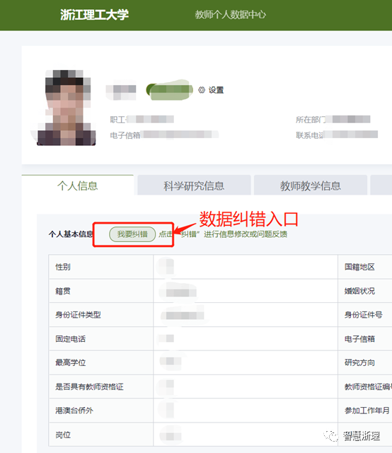 教师个人数据中心是我校数字化改革“1821+X”方案中“浙理中枢”建设的重要组成部分,集中呈现了教师个人在校期间所产生的人事、教学、科研、设备资产、图书借阅等相关数据,形成个人数字档案。