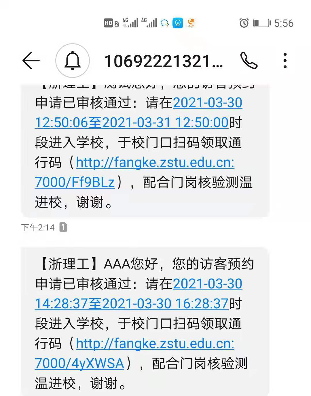 ② 需关注手机短信是否对访客系统的提示短信进行了拦截。