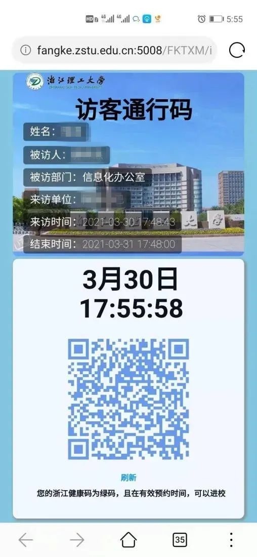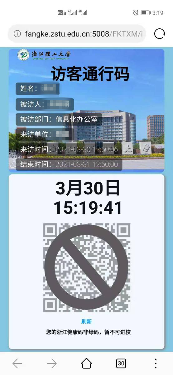 提示2:校外访客必须拥有浙江省健康码绿码,否则不能显示有效进校码,不可进校。