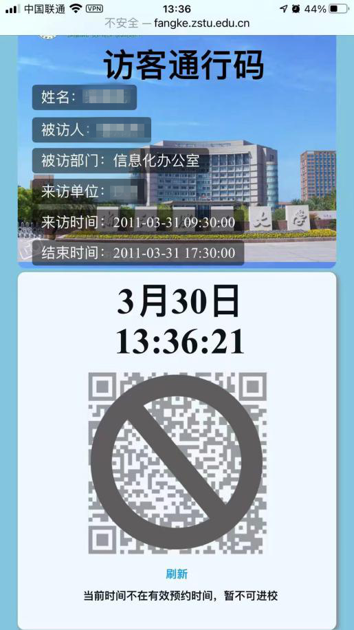 提示1:校外访客必须在有效期内才能打开进校码,提前或者已失效则不能打开进校码。