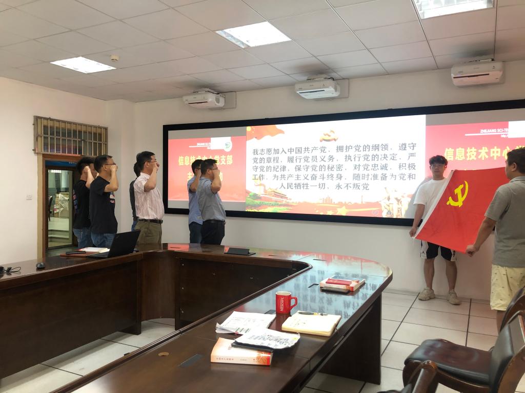 6月24日上午,信息技术中心党支部开展党史学习教育专题组织生活会,部门负责人孙显水作党史学习教育专题党课,支部全体成员现场重温了入党宣誓仪式,为建党100周年献礼。