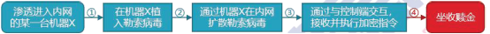 利用电子邮件、应用程序漏洞(例如 web 应用漏洞)、0day 漏洞(零日漏洞)、Nday 漏洞(已知漏洞)、社会工程学等找到进入目标网络的大门获取权限后,进行勒索病毒植入。由于传统防御体系是建立在已知知识、规则的基础上,缺乏对未知威胁的感知能力,难以有效发现勒索病毒及其变种。