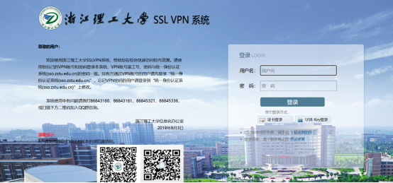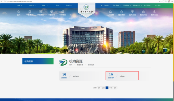 1.打开学校主页(https://www.zstu.edu.cn),点击 “校内资源(VPN)”,选择“SSL VPN”(教师可以使用)。或者直接打开浏览器,在地址栏中输入https://sslvpn.zstu.edu.cn或者输入https://115.236.14.200(电信用户)、https://101.68.71.52(联通用户)。若出现提示证书错误,点击“继续访问”即可。