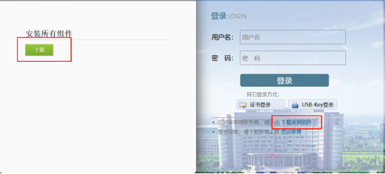 3.您的电脑如果是第一次登录SSL VPN,浏览器会提示自动安装EasyConnect插件;如果浏览器没有提示自动安装,则点击“下载安装组件”手工安装EasyConnect。