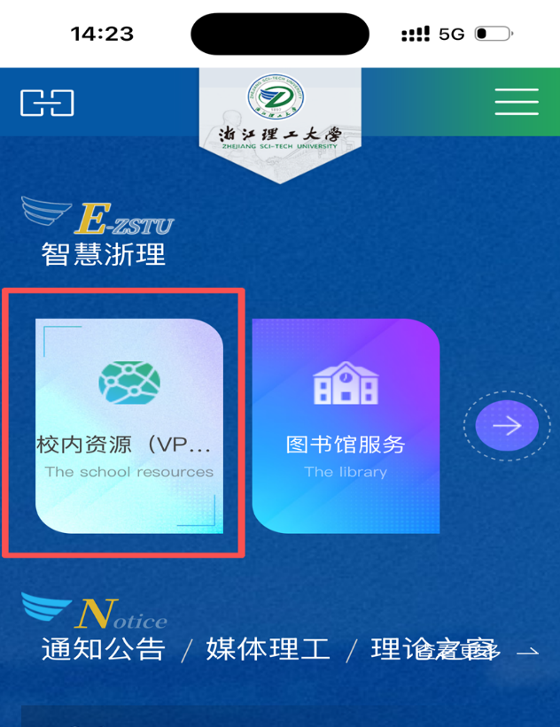 1.打开学校主页(https://www.zstu.edu.cn),点击“校内资源(VPN)”,选择sslvpn(教师可以使用)。或者直接打开手机浏览器,在地址栏中输入https://sslvpn.zstu.edu.cn,或者输入https://115.236.14.200(电信用户)、https://101.68.71.52(联通用户)。若出现提示证书错误,点击“继续访问”。