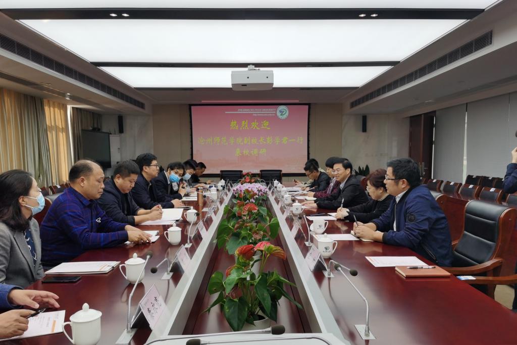 11月10日上午,沧州师范学院副校长彭学君一行来校调研。副校长王剑俊,计划财务处、信息化办公室相关负责人和工作人员参加调研。