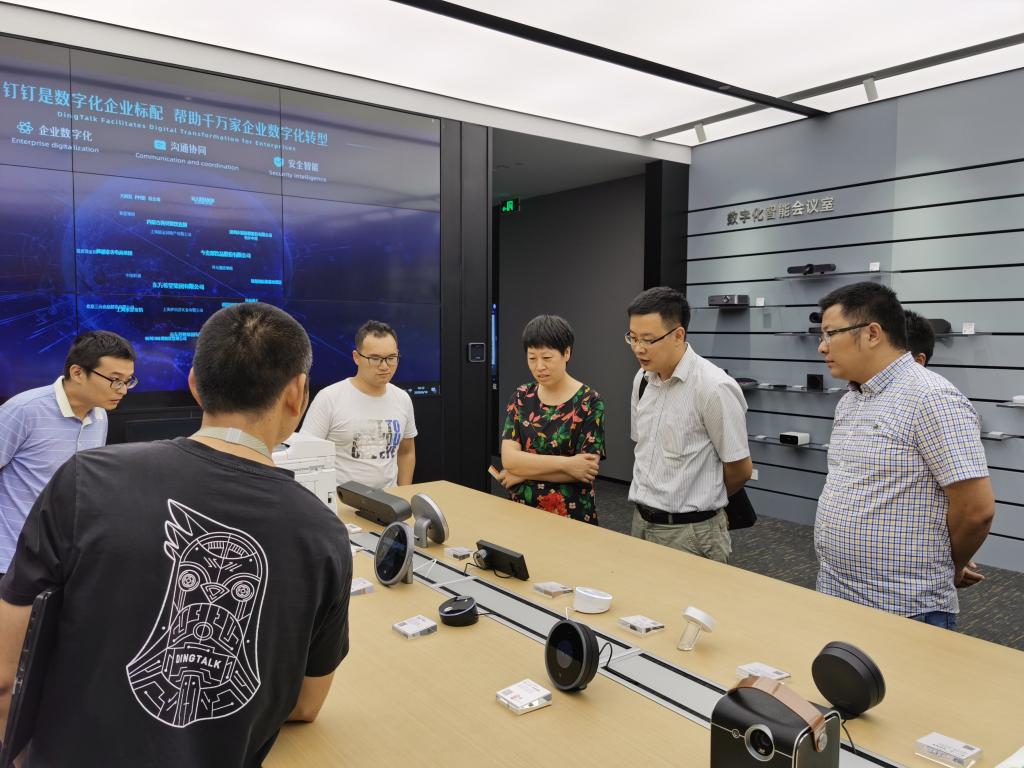 会后,我校一行参加了钉钉智能硬件展厅,学习了解钉钉在考勤、会议室、门禁、办公、云打印等方面的智能应用。