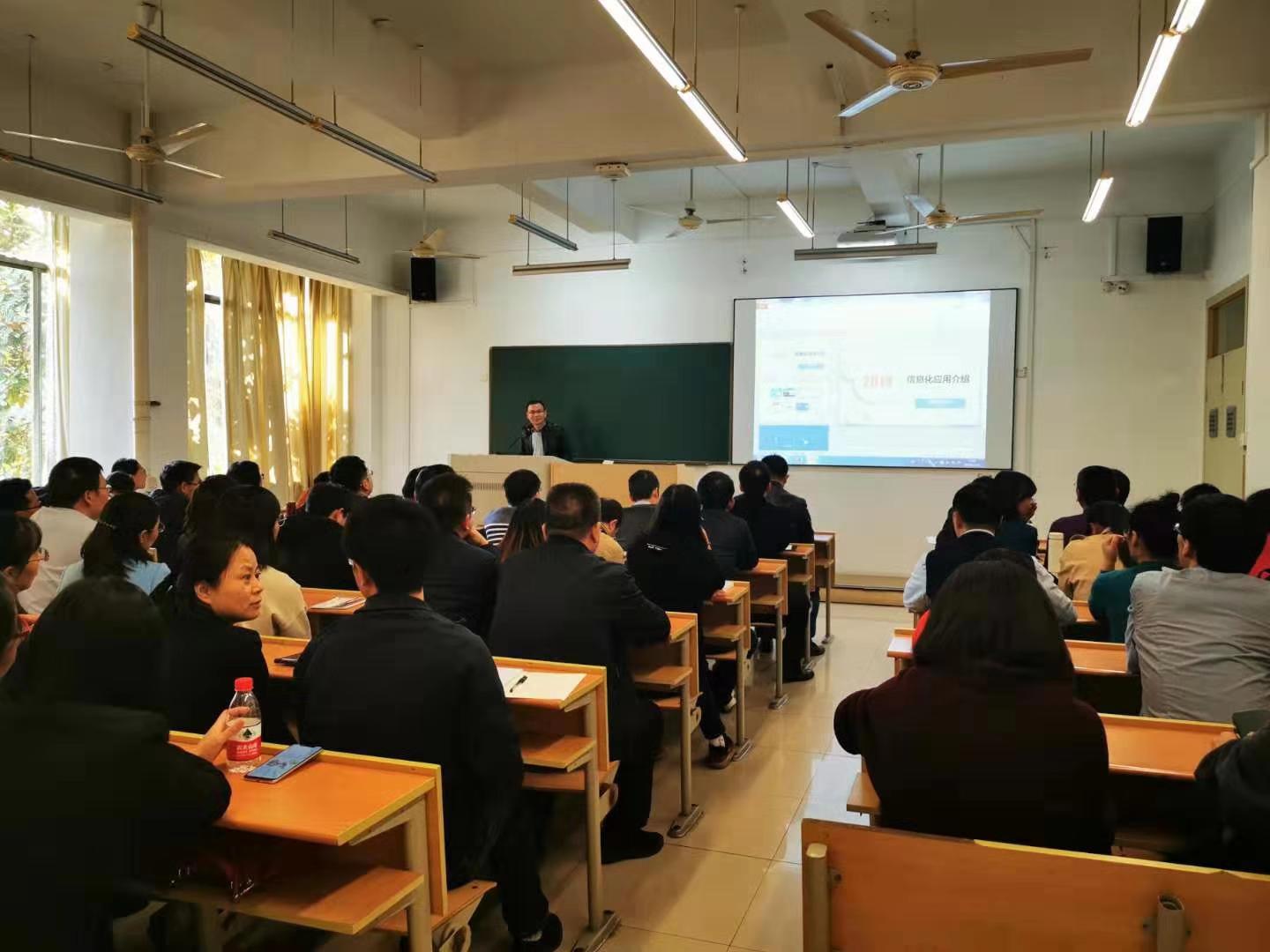 为推进“不忘初心、牢记使命”主题教育的整改落实,信息化办公室开展信息化推广服务月活动,对主题教育学习调研中师生关注度较集中、需求较强烈的信息化应用进行推广宣讲,该举措受到师生的支持和欢迎。11月6日下午,组织各单位网络安全与信息化联络员进行信息化应用培训,11月13日至15日期间,赴9个学院(部)的全体教职工大会进行信息化推广服务。