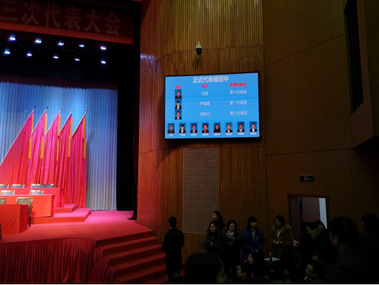 此次党代会也是该系统建成以来第一次为校级重大会议提供服务,信息化办公室全体人员为此次党代会的召开进行了精心准备,采用了三套方案,在大剧院报告厅入口处放置了5台智慧门牌,布置签到通道,反复进行多次测试,确保正式会议时万无一失。