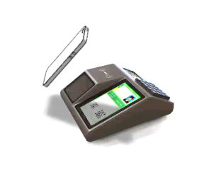 第二步:在听到消费机发出“请支付”的提示音后,持手机将付款码对准消费机的扫码头完成支付。
