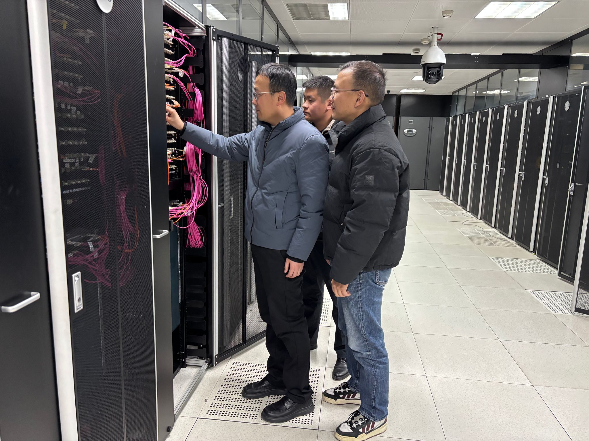 信息技术中心高度重视本次保障任务,以 “零失误、零故障、零投诉” 为目标,提前谋划、精密部署,用专业技术与责任担当,为两场考试筑起坚实的数字化屏障。开考当天,中心主任余建潮、副主任蒋国明亲临现场指导开考前的最后一次设备检测,并分赴两个校区坐镇指挥。网络运行科科长高君和临平校区技术员莫昊鹏分别驻守两个校区,进行“点对点” 实时保障。据悉,为满足本次招生考试数据存储要求,确保全程平稳有序,中心提前部署了混合云iStack一体机,对考试后台服务器及考场内的有线、无线网络相关设备进行了多次测试,确保设备的可靠和稳定;提前排查四六级考试考场视频监控链路网络情况,并对考试区域内所有Wi-Fi设备、电子设备进行关闭及屏蔽,保障听力播放无延迟。