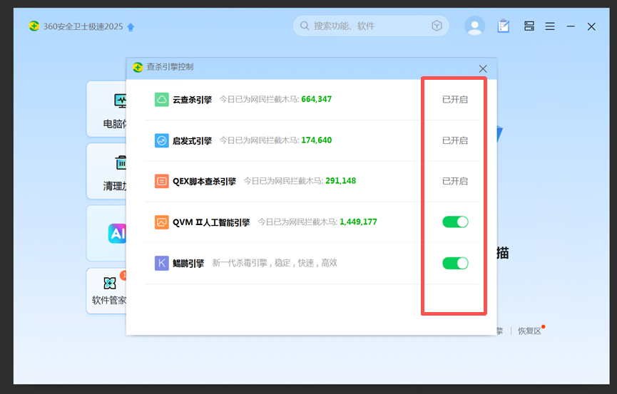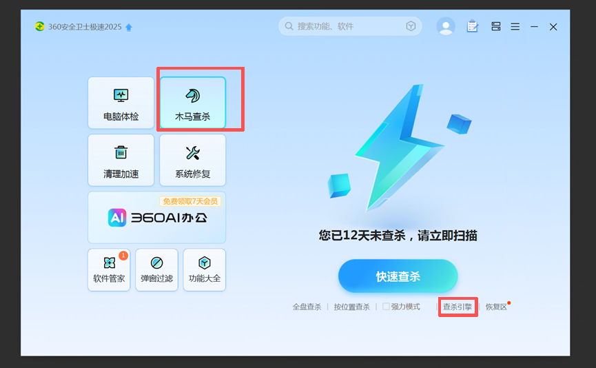3. 点击木马查杀模块,然后点击查杀引擎,勾选所有引擎。