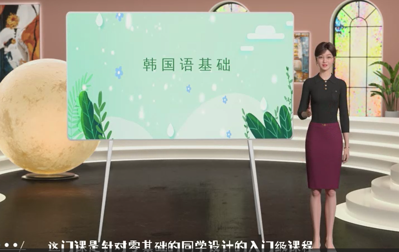 “안녕하세요!”(你好)——伴随着清晰自然的韩语发音,数字教师“李老师”在屏幕上展开教学。数字教师以其逼真的形象、流畅的发音和自然的教态,让在场学生直呼“神奇”。