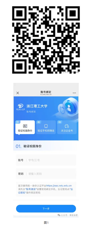 五、SSO账号激活后绑定企业微信:可使用SSO的新密码认证绑定加入浙江理工大学微信企业号。