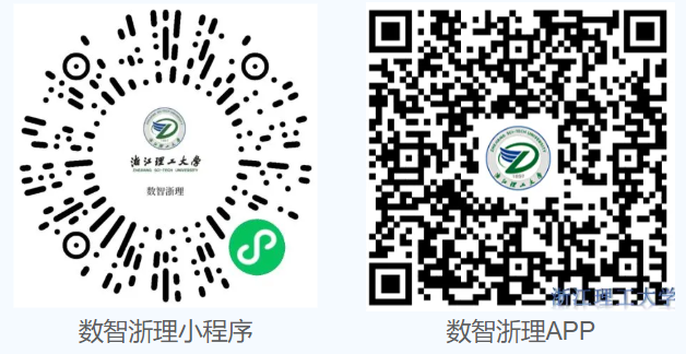 扫描下方小程序二维码,或者扫码下载数智浙理APP